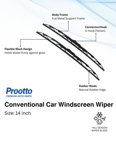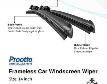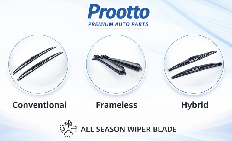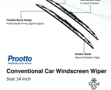 Prootto Offer variety of wiper blades such as Conventional, Hybrid and Frameless Wipers. Ranging from 12" to 26".